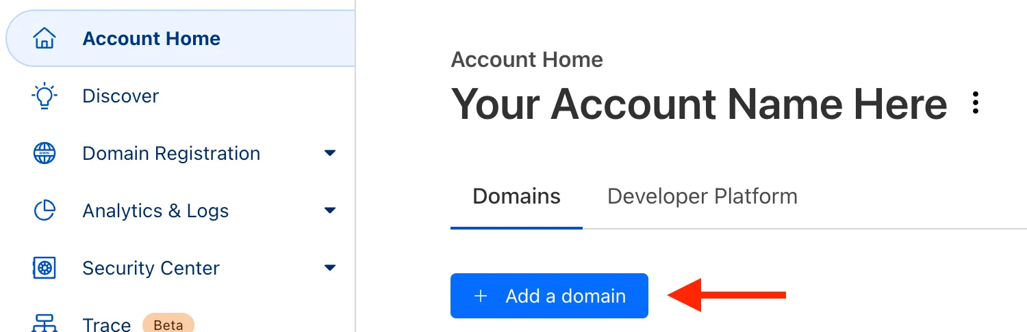 If you already have a domain name, or simply prefer to use a different registrar, you can add your domain to Cloudflare as follows: