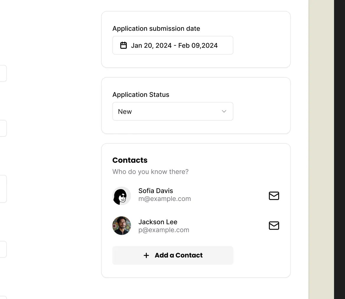 Just like the Applications Table, let’s start by copying and pasting the implementation code directly from shadcn/ui’s documentation into our component: