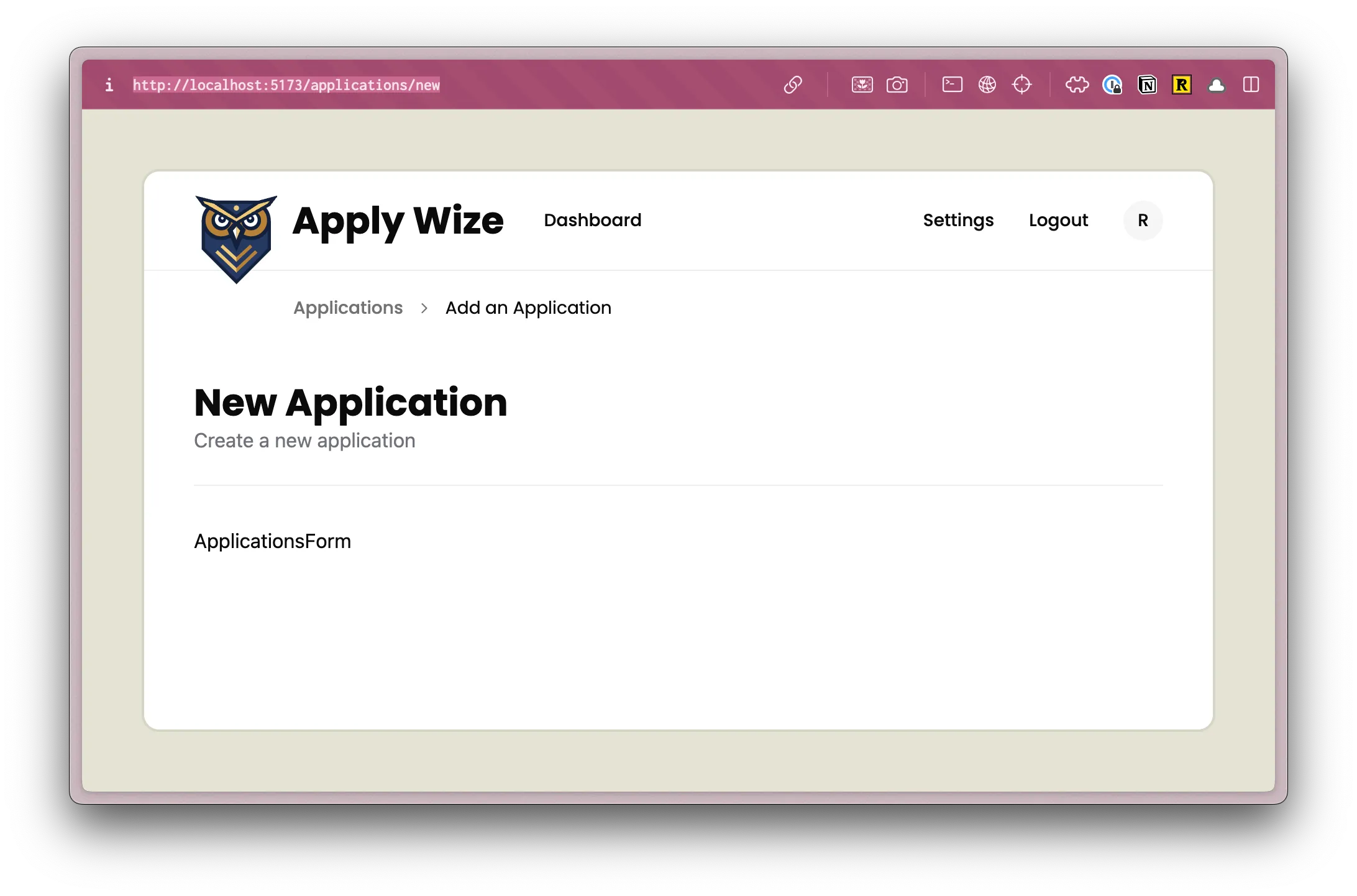 Originally, we defined our /new route, returning an h1 element that said “New Application”. Let’s change that to return our New component instead.