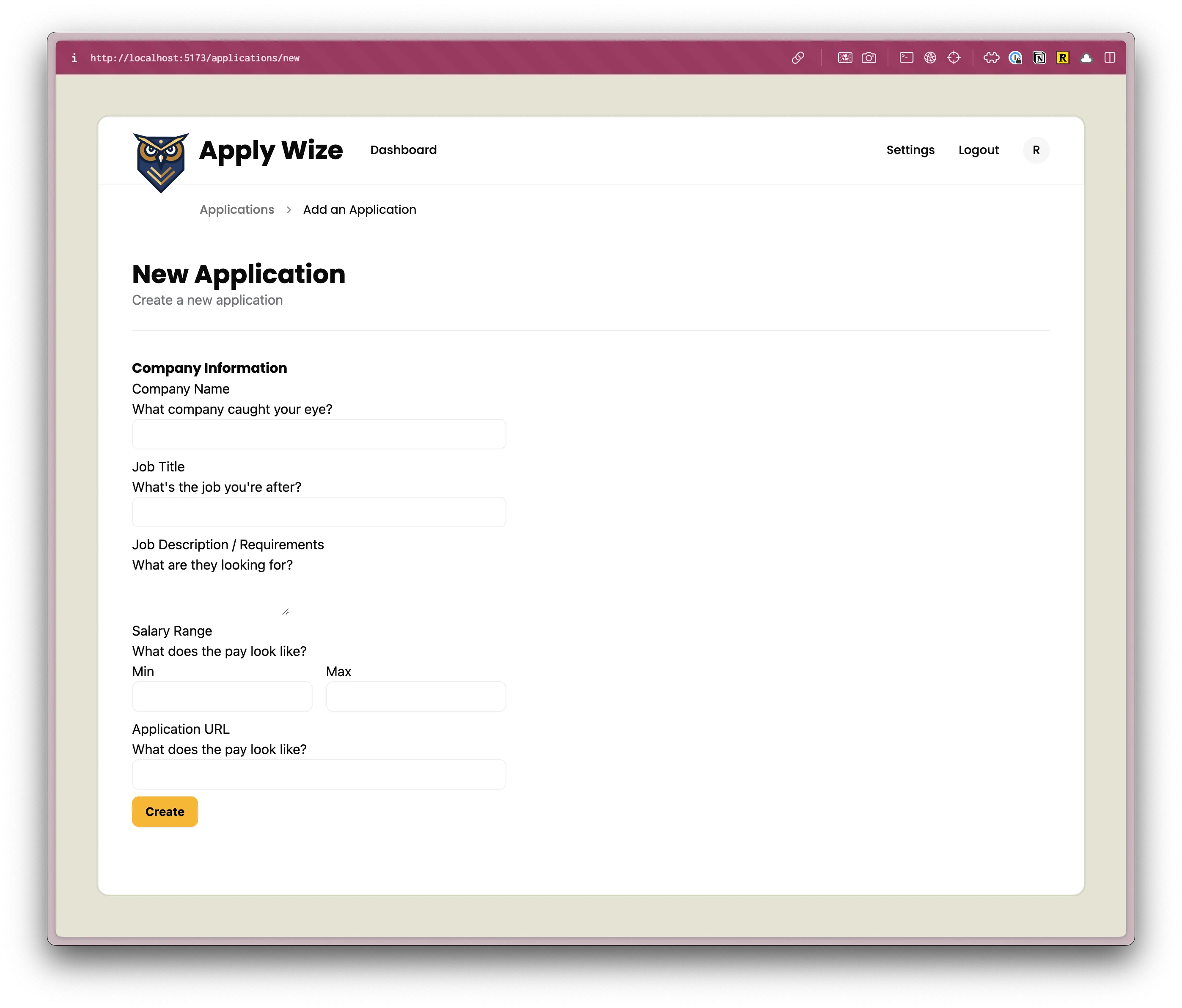 Now, that we have a way of displaying our applications, we need a way of adding new ones.